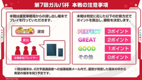 第7回ガルパ杯の予選はアプリ内の特設ページにてオンラインで実施されます。