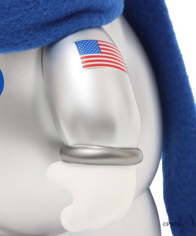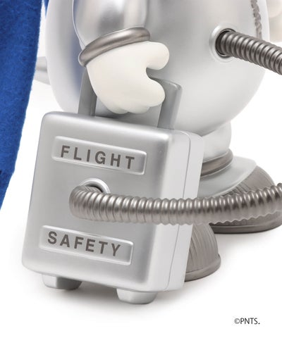 本フィギュアは、メタリックシルバーの宇宙服を着用したスヌーピーを再現しており、サイズは15インチ(約38cm)の存在感ある仕上がりです。付属品として、ソフト素材のスカーフが同梱されています。また、透明のヘルメットがスヌーピーの顔を保護し、フライトセーフティパックもセットされています。ヘルメットは付属のツールを使用することで取り外しが可能であり、様々なシチュエーションを再現して楽しむことができます。