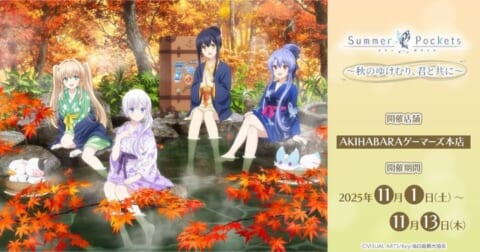 TVアニメ『Summer Pockets』~秋のゆけむり、君と共に~フェアは、AKIHABARAゲーマーズ本店1Fにて2025年11月1日(土)から11月13日(木)まで開催されます。詳細情報や販売グッズについては、ゲーマーズ公式サイトの特集ページにてご確認ください。