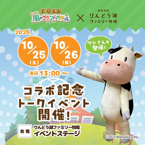 『牧場物語 Let’s!風のグランドバザール』と「那須高原りんどう湖ファミリー牧場」のコラボイベントが、好評につき2026年1月12日(月祝)まで期間延長されることが決定いたしました。さらに、2025年10月25日(土)・26日(日)には開発チームによるトークイベントも緊急開催されます。