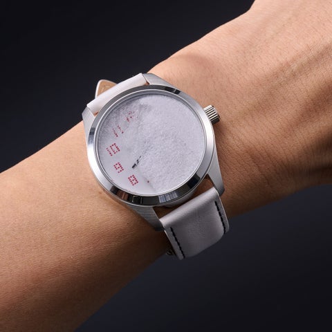 三原氏が手掛けた商品として、現在受注中の「仮面ライダー電王 こぼれ落ちる砂の腕時計」や「スーホの白い馬Tシャツ」も紹介されています。特に「仮面ライダー電王 こぼれ落ちる砂の腕時計」は、盤面の約40%に白い砂を閉じ込めたデザインが特徴です。
