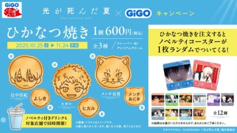 TVアニメ「光が死んだ夏」とGiGOグループのお店によるコラボキャンペーンが2025年10月25日(土)より開催されます。クレーンゲームでのノベルティ進呈、限定プライズの登場、コラボたい焼きやドリンクの販売、Xでのキャンペーンなど、多岐にわたる内容が展開されます。開催内容や参加方法を詳しく紹介しますので、ぜひ参考にしてください。