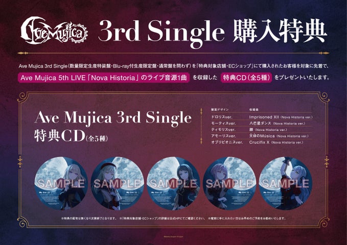 Ave Mujica 3rd Single「’S/’ The Way / Sophie」が2025年12月10日(水)にリリースされます。数量限定生産特装盤とBlu-ray付生産限定盤には、Ave Mujica 5th LIVE「Nova Historia」の映像が収録されます。