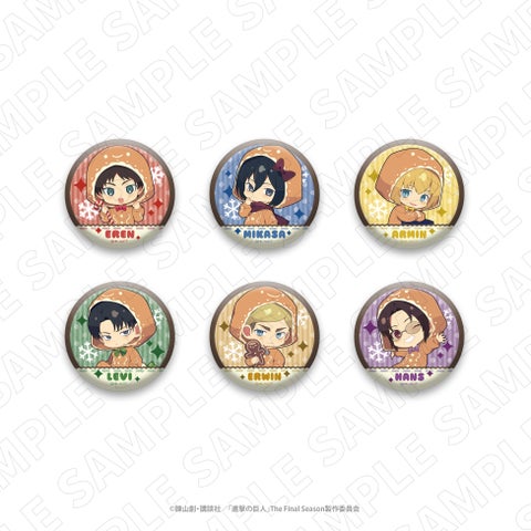 • 3 o’clock 進撃の巨人 ミニキャラ缶バッジ(エレン/ミカサ/アルミン/リヴァイ/エルヴィン/ハンジ):各550円(税込)