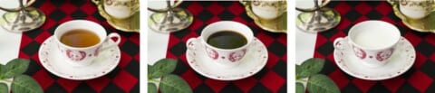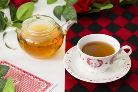 - ハートの女王の法律をイメージしたデカフェのホットレモンティーが、ポットで提供されます。