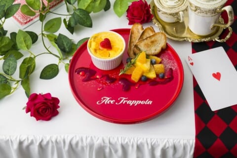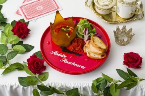 メニューは、シーズン1「エピソード オブ ハーツラビュル」にフォーカスし、ハーツラビュル寮のティーパーティーをイメージした内容です。すべてのメニューはディズニーの栄養ガイドラインに準拠し、減塩、減糖のレシピで開発されています。