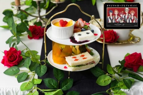 - ハーツラビュル寮のメニューを少しずつ楽しめるアフタヌーンティーセット。オリジナルカードが付属します。
