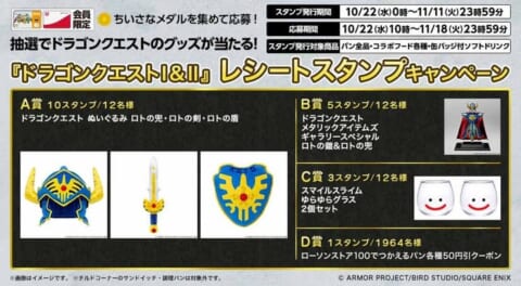 レシートスタンプキャンペーンで「ドラゴンクエスト」グッズをゲット