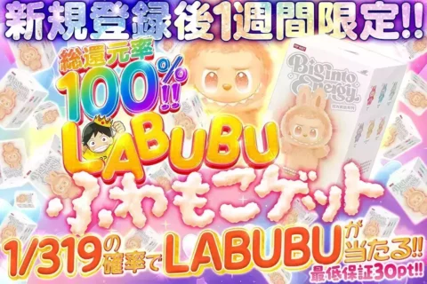 日本トレカセンターは「オンラインガチャ最大手のサイト」と評されるほど利用者が多く、招待コード入力でポイント(マイル)付与など顧客サービスも充実。SNS上でもLABUBU当選報告が複数確認でき、「念願のラブブ!かわいすぎる」といったユーザーの喜びの声が投稿されています。総合評価でも上位に挙げられる信頼度の高い大手サービスです。