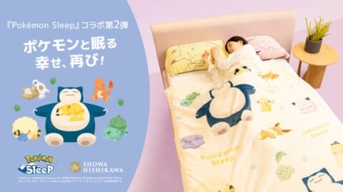 スマートフォン向けアプリ『Pokémon Sleep』と昭和西川のコラボレーション第2弾として、全13アイテムの寝具が展開されます。