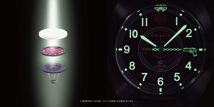 本コラボレーションウォッチは、自衛隊時計も手掛けるKENTEXの技術力と、『リコリス・リコイル』の世界観が融合した、こだわりの逸品です。