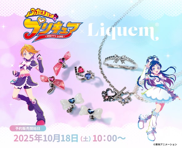 「ふたりはプリキュア」とアクセサリーブランド「Liquem」のコラボレーションアクセサリーが、2025年10月18日(土)10:00より予約販売を開始します。全8種類のラインナップで、2026年3月上旬発送予定です。商品の詳細や予約方法を詳しく紹介しますので、ぜひ参考にしてください。