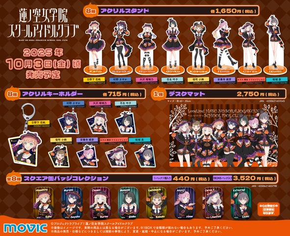『ラブライブ!蓮ノ空女学院スクールアイドルクラブ』より、新たに「Trick&Cute」衣装の描き下ろしイラストを使用した新商品が発売されます。これらの商品は株式会社ムービックから展開され、本フェアの対象となります。