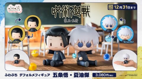 「呪術廻戦 懐玉・玉折 ふわぷち デフォルメフィギュア 五条悟・夏油傑」は、2025年10月20日11時より、株式会社セガ フェイブが運営する「S-FIRE」公式サイトやアニメ・ホビー系関連ショップ他にて予約受付が開始されました。予約期間は2025年12月31日23:59までとなり、お届けは2026年7月を予定しています。