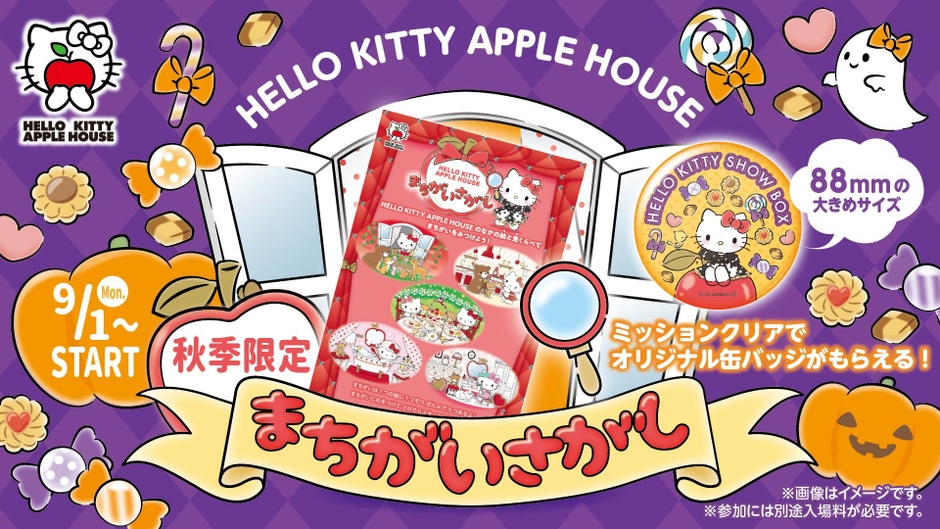 HELLO KITTY SHOW BOXとHELLO KITTY APPLE HOUSEでは、まちがいさがしイベントやショー、お得なプランが提供されています。