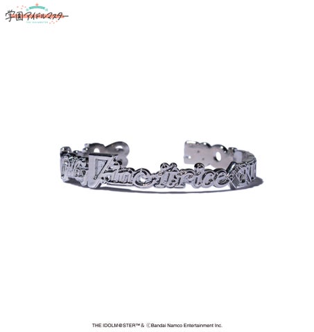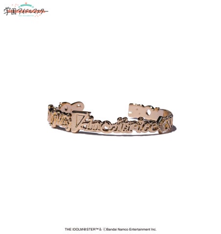 花海咲季のエッセンスが手元を飾るバングルです。バングルを形作るアルファベットは、花海咲季の第一弾ソロ楽曲『Fighting My Way』とレッスン着に見られる『Vincitrice』を合わせたもの。その中に現れる2つの「g」が強調され、初星学園のエンブレムもあしらうことでコラボレーションが表現されています。