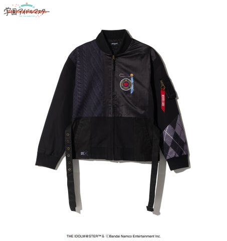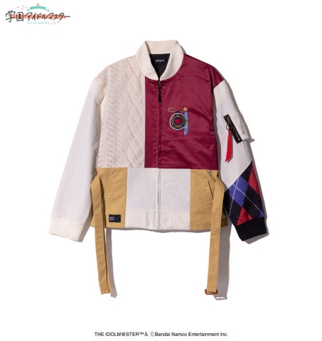 楽曲『初』における花海咲季の衣装をミリタリーのアプローチでリアルクローズに再現したブルゾンです。右身頃や左腕に見られるニットのテクスチャはプリントによるトロンプ・ルイユ(騙し絵)で表現され、ワッペン部分は実際の刺繍が施されています。トレンチコートとフライトジャケットを繋ぎ合わせてリメイクしたかのようなボディは、パーツごとに生地が使い分けられています。袖のディテールに見立てたシガレットポケットに付属するリボンには、花海咲季の負けず嫌いなパーソナリティを表すメッセージが込められています。WhiteカラーはSaki ShirtのWhiteと組み合わせることで、作品を再現するコンセプチュアルな着こなしを楽しめます。