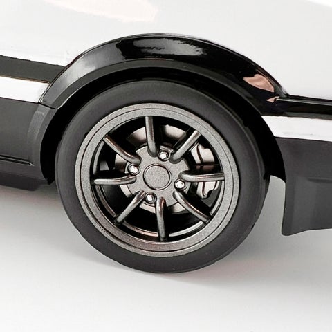 「まるで大きなミニカー」と称されるほどの存在感を持ち、インテリアとして飾れる高いクオリティが特徴です。繊細なホイールからのぞくブレーキキャリパー、リトラクタブルヘッドライト、グリルなど、細部に至るまでこだわって再現されています。車体サイドには「藤原とうふ店(自家用)」の文字が入り、『頭文字D』の名シーンを想起させる遊び心が感じられる一品です。