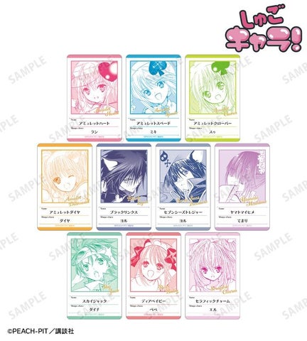 アミュレットハート、アミュレットスペード、ブラックリンクスなど、キャラクターの守護キャラや変身後の姿10種の原作コマとプロフィールがデザインされたカードです。