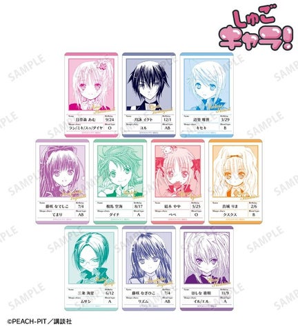 日奈森あむ、月詠イクト、辺里唯世など主要キャラクター10種の原作コマとプロフィールがデザインされたカードです。