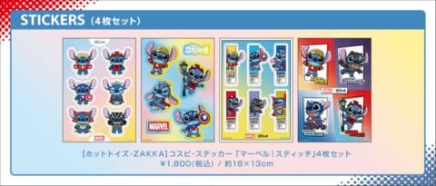 「マーベル・ヒーロー」、「スティッチ/スパイダーマン」、「スティッチ/アイアンマン」、「スティッチ/キャプテン・アメリカ」の全4種。 |