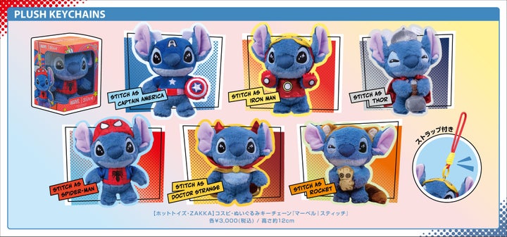 【ホットトイズ・ZAKKA】コスビ・ぬいぐるみキーチェーン『マーベル|スティッチ』(6種): 各3,000円(税込) |