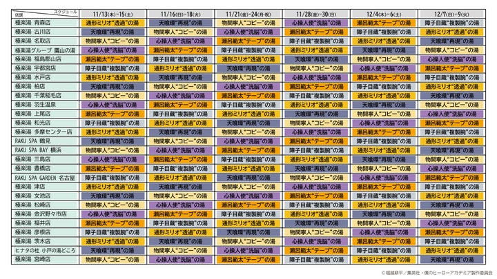 TVアニメ『僕のヒーローアカデミア』と極楽湯・RAKU SPAによるコラボキャンペーン第2弾の詳細が公開されました。