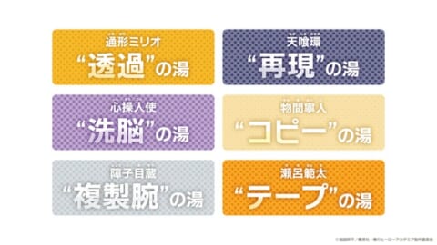 各キャラクターの個性をイメージした「ヒーローの湯」の実施
