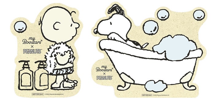 2025年10月27日(月)11時より、公式ECストアにて「PEANUTS」×「myBoostars」コラボデザイン商品を含むギフトボックスが販売開始されます。購入者全員にオリジナルお風呂ステッカー2種セットが同梱されますが、数量限定のため、なくなり次第終了となります。