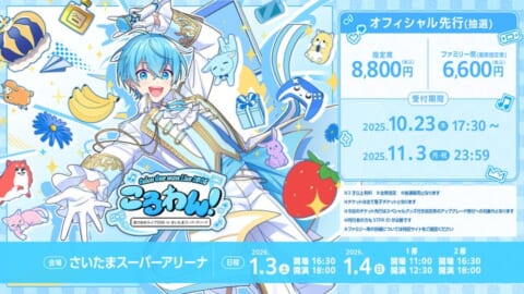 ころん(すとぷり)の約6年ぶりとなるワンマンライブ『ころわん! -あけおめライブ2026- in さいたまスーパーアリーナ』のオフィシャル先行受付が、2025年10月23日(木)17:30より開始されました。2026年の幕開けを飾る注目の公演です。