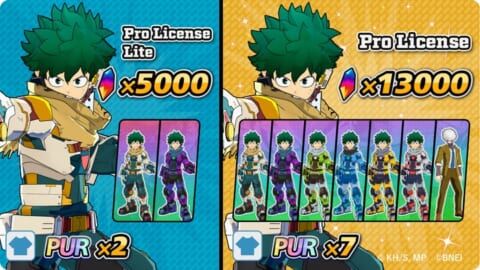 現在登場中のシーズン13ライセンスでは、「緑谷出久 OFA(“個性”アシストギア OFAver.)」の衣装や様々なアイテムが入手できます。今シーズンもプロライセンスの報酬のうち1~25までが手に入る「プロライセンス・ライト」が利用可能です。
