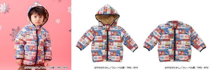 アンパンマンとなかまたちをノルディック柄に落とし込んだ、おしゃれな総柄アウターです。軽くて暖かい中綿入りで、寒い季節の防寒対策に適しています。フード付きで首元までしっかりカバーするデザインは、毎日の通園やお出かけを楽しく彩ります。フードはファスナーで取り外し可能であり、シーンに合わせた着こなしが可能です。