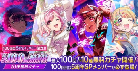 最大100回無料ガチャで5周年SPメンバーを獲得