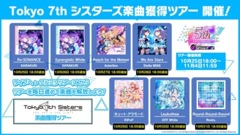 5周年を記念して、UniChØrdがカバーする楽曲「ようこそジャパリパークへ」が追加されます。また、本日18:00より、『Tokyo 7th シスターズ』楽曲7曲を獲得できる「Tokyo 7th シスターズ楽曲獲得ツアー」が開催されます。