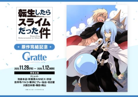 『転生したらスライムだった件』の完結を記念し、アニメイトカフェGratteとのコラボ企画が2025年11月28日より開催されます。グラッテやクッキー、アイスの販売に加え、有償特典としてトレーディングアクリルコースターが登場し、ファンにとって見逃せないイベントとなります。