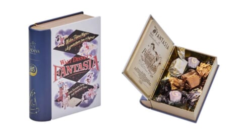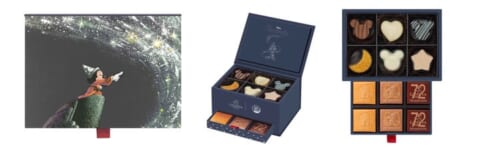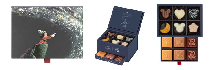 『ファンタジア』の1シーンをデザインしたアソートメントには、ミッキーアイコンをかたどった3種類の限定チョコレートと、星や月の形のチョコレートが詰め合わせられています。