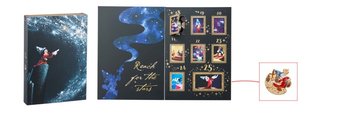 ブック形の「8days カウントダウンカレンダー」は、本を開くと作品中の1コマが描かれた8つの扉が出現します。ミッキーアイコンの限定チョコレートやGキューブを毎日一つずつ楽しめるほか、クリスマス当日には『ファンタジア』公開85周年を記念して特別にデザインされたミッキーデザインの限定ピンバッジがプレゼントされます。