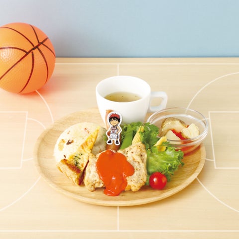 『黒子のバスケ』15th ANNIVERSARY 選べるデリプレートは、メインディッシュとキャラクターカラーのソース、副菜が選べるプレートです。