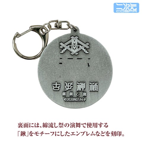 キーホルダーの裏面には、綿流し祭の演舞で使用する「鍬」をモチーフにしたエンブレムなどが刻印されています。鍵やバッグなどの小物に付けることで、日々の生活に『ひぐらしのなく頃に 卒』の世界観を取り入れることが可能です。