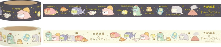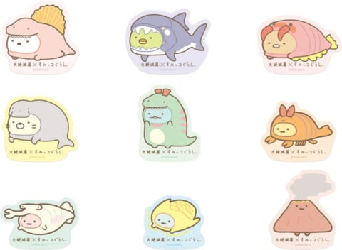 今回のコラボレーションでは、特別展「大絶滅展」に展示されるアノマロカリス、ディメトロドン、ステラーダイカイギュウといった古生物たちの着ぐるみをかぶった「すみっコ」たちのオリジナルアートが描き下ろされました。このコラボデザインは、本展限定の様々なグッズに展開されます。