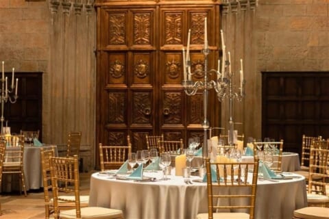 「ホグワーツディナー」は、クリスマスの装飾が施されたホグワーツの大広間でコースディナーを堪能後、夜のスタジオツアーを貸し切りで楽しめる特別なプランです。