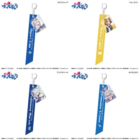 アニメ『ウマ娘 シンデレラグレイ』のリボンキーホルダーは、キャラクターの名前が入ったおしゃれなリボンと、アクリルチャームが付属する存在感のあるアイテムです。全4種類のラインナップで展開されます。