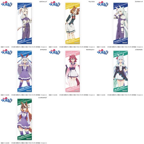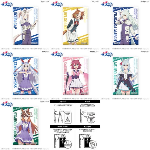 アニメ『ウマ娘 シンデレラグレイ』のロング缶バッジは、大きめの縦長サイズが特徴です。バッグなどに取り付けて、自分だけのカスタムを楽しむことができます。ミニアートスタンドと同様に、全7種のキャラクターデザインが用意されています。