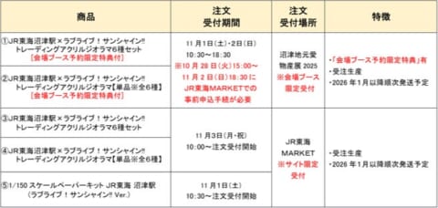 JR東海と「ラブライブ!サンシャイン!!」のコラボレーションアイテムは、JR東海MARKETにて販売されます。各商品の詳細や購入方法については、以下のリンクよりご確認ください。