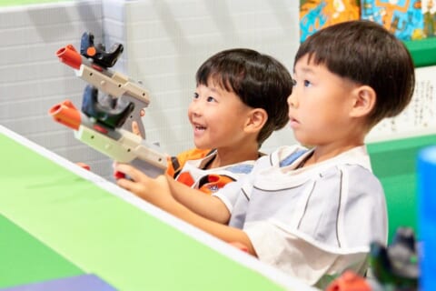 『ウルトラアスレチック』は、ウルトラマンの世界を体験できる臨場感あふれるアスレチック施設です。トランポリンやスライダー、ボールプールなど、お子さまが全身を使って遊べる遊具が揃っています。ウルトラマンや隊員をモチーフにしたビブスを着用することで、より一層ウルトラヒーローになりきって楽しめます。