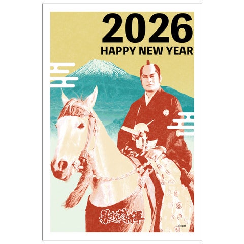 暴れん坊将軍が年賀状になって登場します。2026年は暴れん坊将軍年賀状で、粋な新年のご挨拶が可能です。同一絵柄2枚入りで550円(税込)で販売されます。
