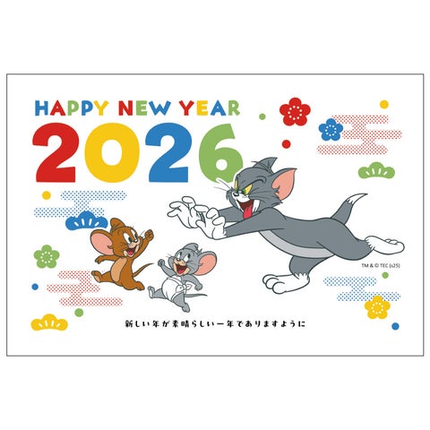 世界中で愛されるアニメーション作品「トムとジェリー」がデザインされた年賀はがきです。同一絵柄3枚入りで各770円(税込)で販売されます。
