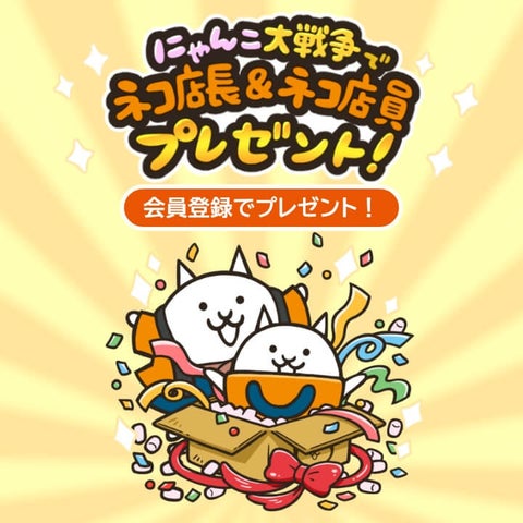 ポノスオフィシャルグッズストア『にゃんこ大商店オンライン』にて会員登録を行うと、スマートフォンアプリ『にゃんこ大戦争』内で使用できる限定キャラクター「ネコ店長&ネコ店員」がプレゼントされます。この機会に、特別なキャラクターを手に入れることが可能です。詳細については、『にゃんこ大商店オンライン』の公式サイトをご確認ください。