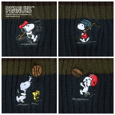 今回のコラボレーションソックスは、スヌーピー発祥の地であるアメリカの4大スポーツをテーマに、刺繍でスヌーピーが表現されています。