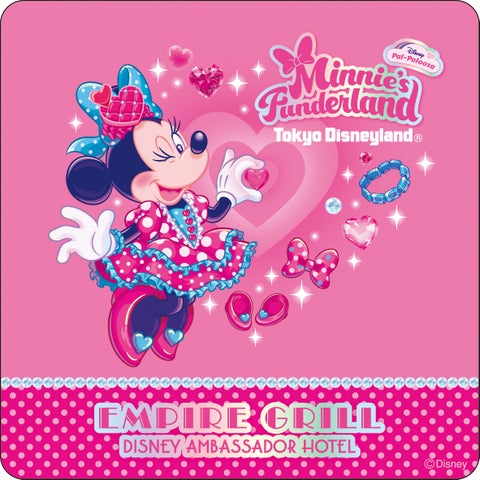 香ばしく焼き上げたグリル料理をコーススタイルで提供。エンパイア・グリル・シグネチャーディナーのデザートは、季節のフルーツの苺を使い、ミニーのかわいらしさとスウィートな雰囲気を色合いで表現しています。ランチコースのデザートは、ハート型にデコレーションされたレモンタルトの上にミニーのモチーフが飾られ、かわいらしい姿が目を引きます。いずれのコースにもピンクとブルーの衣装に身を包んだミニーのオリジナルチャームが付きます。スペシャルドリンクは、ブルーシロップやストロベリーミックスシロップなどを使用し、“ミニーのファンダーランド”で登場するミニーの衣装をイメージしており、オリジナルデザインのコースターとセットで提供されます。